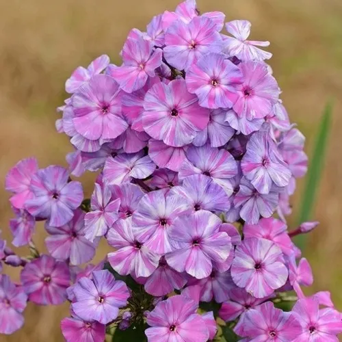 Цветение флокса Отем Джой происходит в средие сроки с июля по август, причем период цветения обильный. Неповторимые лилово-сиреневые оттенки, украшенные яркими малиновыми полосками, делают этот цветок настоящим центром притяжения в любом саду. Аромат этого флокса сильный и приятный.