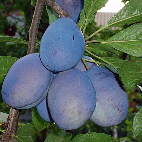 Плоды крупные (средняя масса 35, максимальная – 45 г), одномерные, овальной формы, фиолетово-бурой окраски. Кожица средней плотности, покрыта сильным восковым налетом, легко снимающимся с плода. Мякоть желтая, нежная, сочная, кисло-сладкого вкуса. Косточка среднего размера, от мякоти отделяется хорошо. Сорт десертный.